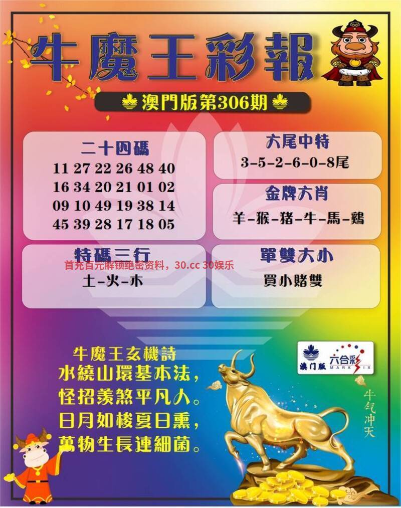 306期:【绝杀三肖】〖马虎猪〗开:牛17中